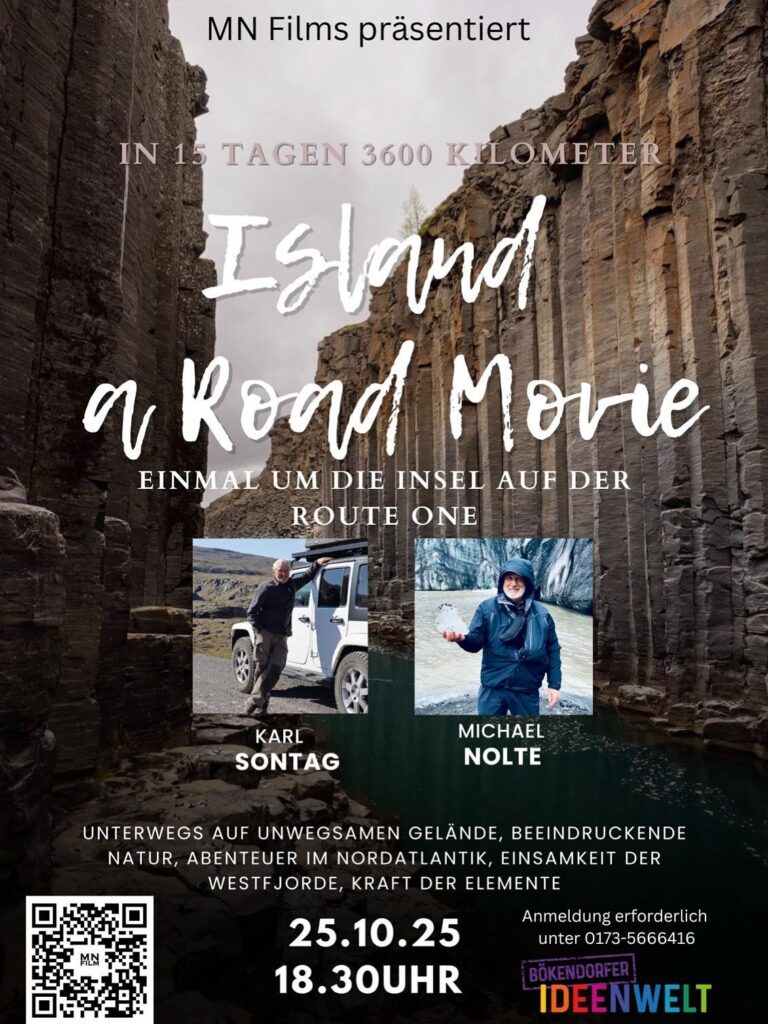 Michael Nolte und Karl Sontag nehmen die Besucher mit auf eine außergewöhnliche Tour rund um Island. Zwei Wochen lang fuhren sie rund 3.600 Kilometer auf der „Road One“, übernachteten im Dachzelt und erlebten alle Facetten des isländischen Wetters – von strahlendem Sonnenschein bis hin zu stürmischem Wind.