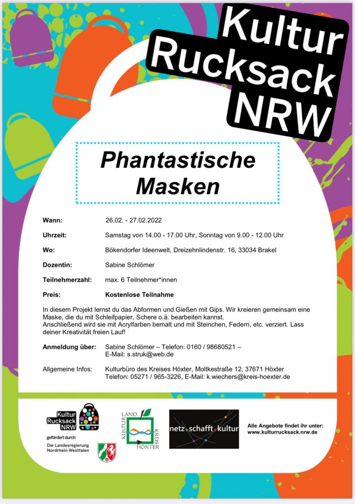 In diesem Projekt lernst du das Abformen und Gießen mit Gips. Wir kreieren gemeinsam eine Maske, die du mit Schleifpapier, Schere o.ä. bearbeiten kannst.