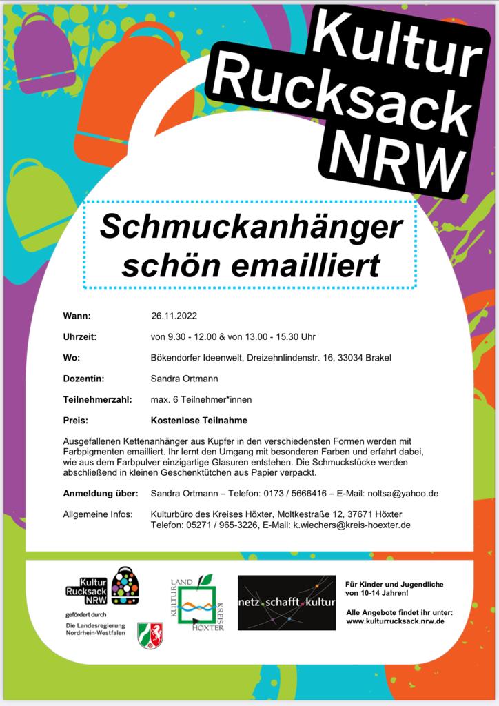Schmuckanhänger schön emailliert – „Kulturrucksack NRW“